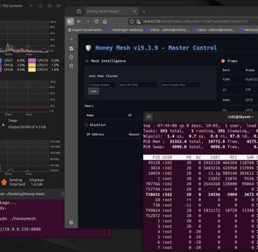 Honey Mesh v19.3.9 is engineered for extreme efficiency, delivering autonomous, distributed active defense with minimal impact on system resources. Designed as a lightweight, single-binary appliance, it thrives on resource-constrained environments like edge routers, virtual machines, and high-traffic servers—often sharing the same IP address without conflict. By leveraging eBPF/XDP for kernel-level enforcement and Go's concurrency model for userspace operations, Honeymesh achieves sub-millisecond response times while consuming fractions of available CPU and memory. This page dives deep into its resource profile, benchmarks, scalability, and unique ability to coexist on shared IPs, backed by real-world data and optimizations that make it the sovereign standard in decentralized defense.